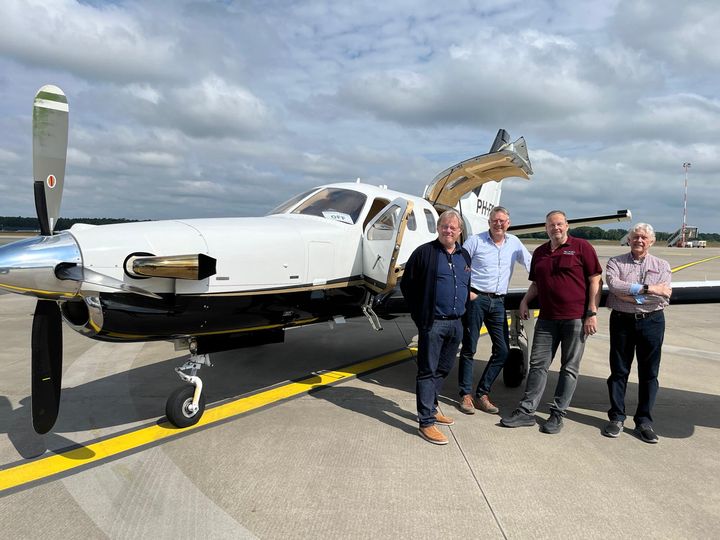 E kuater pilotonan ta realisando e buelo ku un avion TBM 850 turboprop, avion di un motor, pero fuerte i apropiá pa un trayekto asina. Di kual e buelo aki a dura un total di 10 dia.