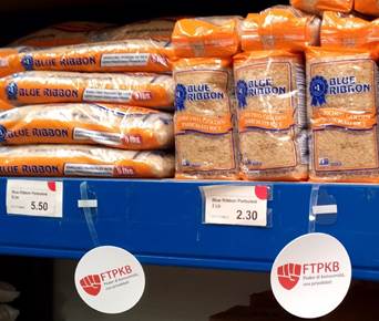 On its own initiative, Bondigro has purchased hang indicators to clearly indicate the most advantageous items published by FTPKB for their customers. This proactive gesture illustrates their commitment to informing and supporting consumers. In addition, Bondigro has made significant improvements to their product range and shopping experience. Striking is the availability of many inexpensive private label products from ‘Gwoon’, as well as the improved refrigeration department that is now equipped with high standards for hygiene and presentability. Bondigro also considers the culturally bound demand for products; An example of this is the availability of funchi (cornmeal), a staple in many local cuisines.
