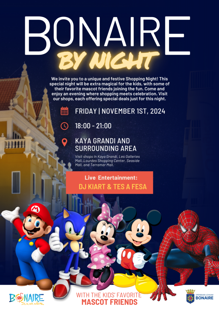 All our residents and our visitors are welcome to come and enjoy the fourth edition of Bonaire by Night on November 1st, 2024 from 6 pm to 9 pm.