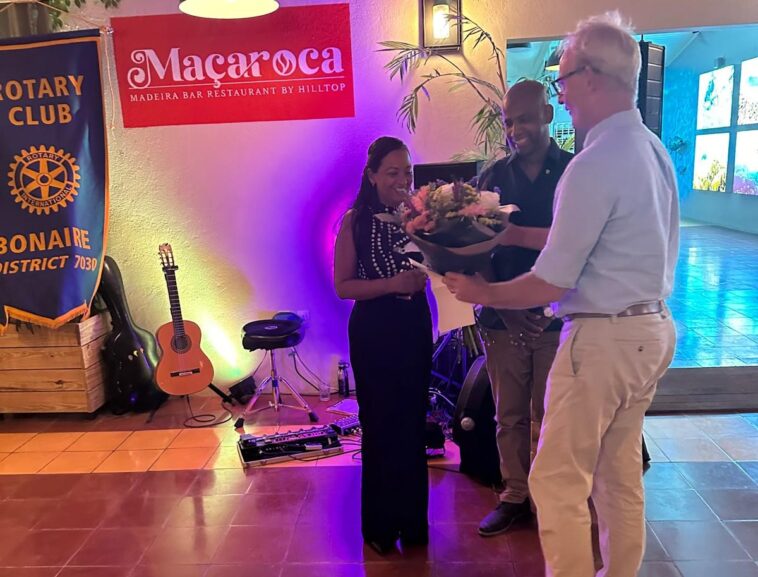 E instalashon komo miembro di honor a tuma lugar durante un reunion ku sena di Rotary na restaurant Macaroca. Den su palabra, presidente Jan Okhuijsen a indiká ku ta un honor pa yama bon bini na e persona notabel aki den Rotary.