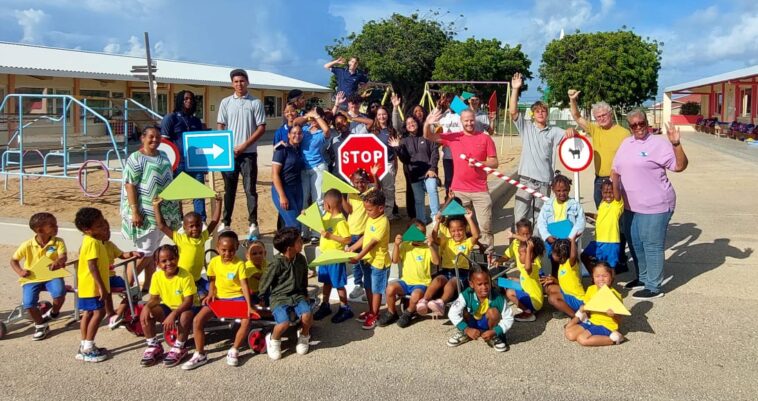 Kralendijk,- Het kleuterplein van Kolegio Rayo di Solo heeft een vrolijke en leerzame make-over gekregen, dankzij de inzet van de leerlingen van het vak Technologie en Toepassing (T&T) van Liseo. T&T is een nieuw praktijkgericht programma (vak) bij de mavo bovenbouw. In een bijzonder samenwerkingsproject hebben de mavo 3- en 4-leerlingen in slechts tien weken tijd een reeks speelse en educatieve elementen ontwikkeld en geleverd, die nu volop worden gebruikt door de kleuters.