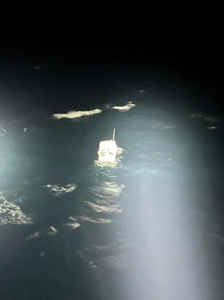 E Centro di Operashon Maritimo di Wardacosta mesora a dirigi e helicopter pa e area caminda e boto tawata, pa por yuda e dos hombernan na bordo. Na yegada na e sitio e helicopter di Wardacosta a asisti e dos hombernan na bordo y a hisa nan paden di e helicopter.