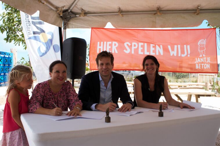 Kralendijk – Today, an important step has been taken to provide children in Bonaire with more and better play spaces. In the playground of Nieuw Amsterdam, currently under construction, Jantje Beton, the Ministry of Health, Welfare and Sport (VWS), and the Public Entity Bonaire (OLB) have signed the Bonaire Play Agreement 2025-2027.