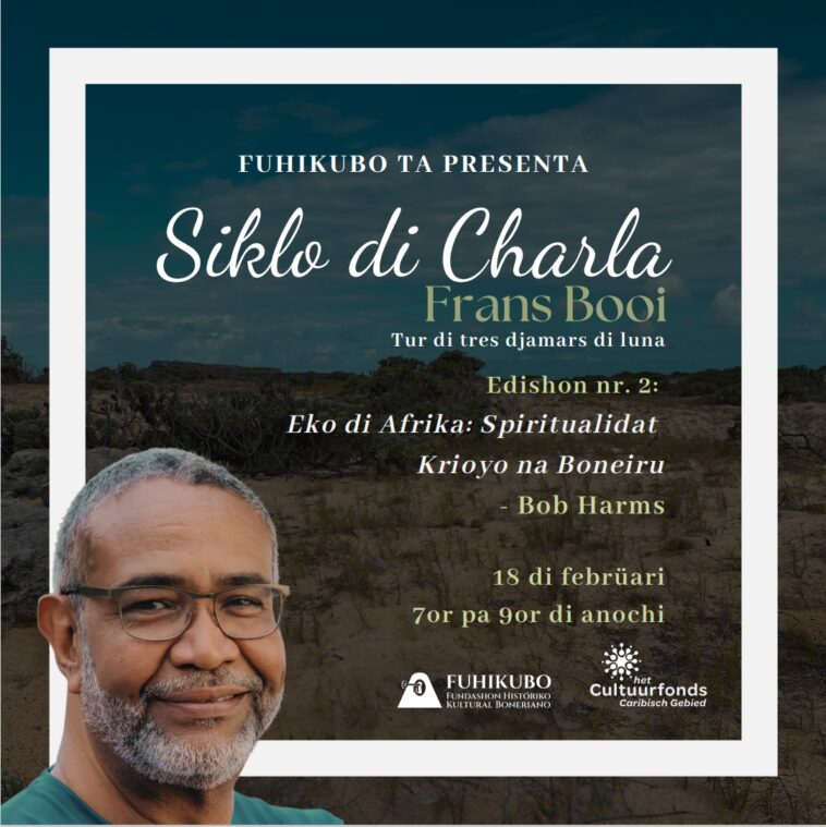 Kralendijk,- Despues di un promé edishon exitoso, FuHiKuBo ta invitá bo pa e segundo edishon di Siklo di Charla Frans Booi, titula: “Eko di Afrika: Spiritualidat Krioyo na Boneiru”. E charla ta na enkargo di e konosido investigadó di etnografia, Bob Harms.
