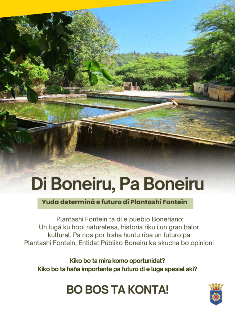 Kralendijk,- Entidat públiko Boneiru (EPB) ta trahando riba un plan pa futuro di Plantashi Fontein. E plantashi akí ta un lugá úniko na Boneiru – e ta riku na naturalesa, kultura i historia.