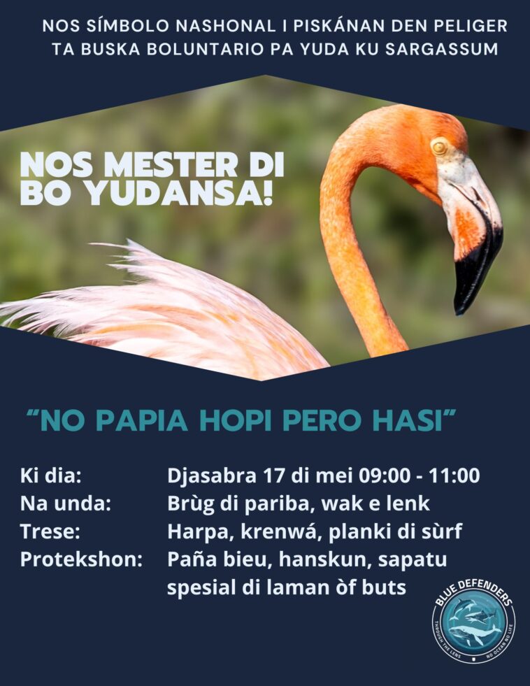 Kralendijk,- Flamingonan yòn a keda sin kuminda i e piskánan ta muriendo dor e kanal ta yená ku Sargassum. P’esei, akshon imidiato ta nesesario!
