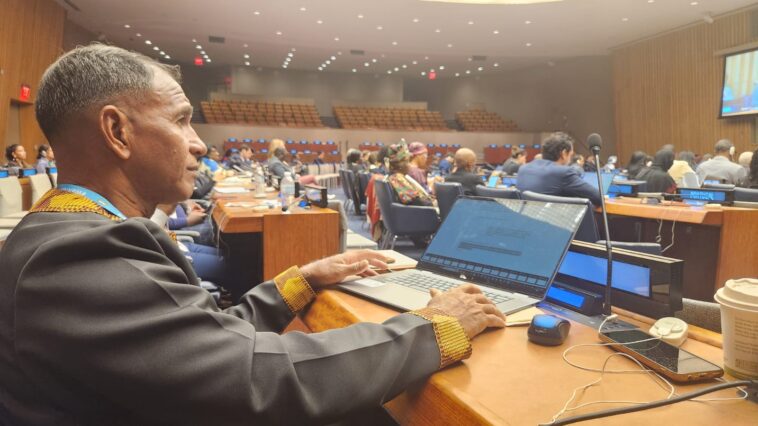 Kralendijk,- James Finies, lider di Pueblo Progresivo Uni, i Davika Bissessar Shaw, presidente di Bonaire Human Rights Organization, a tuma parti resientemente den e Dialogo di Nivel Haltu “Hustisia pa Afrikano i Hendenan di Desendensia Afrikano via Reparashon” na e Sede di e Nashonan Uni na New York.