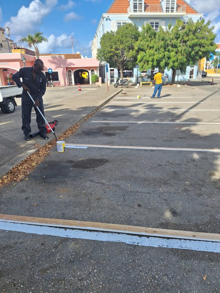 Kralendijk -A renobá markashon di kaminda i markashon di e espasionan pa stashoná outo den sentro di siudat, konosí komo ‘centrumgebied’ na Playa, pa mehorá siguridat di tráfiko i pa krea un mihó bista pa usuarionan di kaminda. Resientemente e unidat di Trabou Públiko di Direktorado di Planifikashon i Desaroyo a finalisá e trabounan.