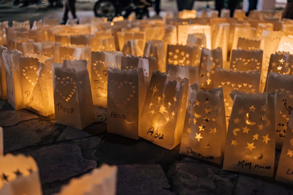 In the shape of a large heart, 300 lanterns with LED lights were lit, each carrying its own light and personal message. The outer circle of the heart displayed the names of all former residents of Hospice Kas Flamboyan. In addition, tribute was paid to the seven people who were aboard the ship Isidel when it disappeared in 1978, the same ship that gave Parke Isidel its name. They were given a special place in the center of the heart. Participants were invited to write or decorate their own lantern before placing it in the heart, creating a deeply moving image of togetherness.