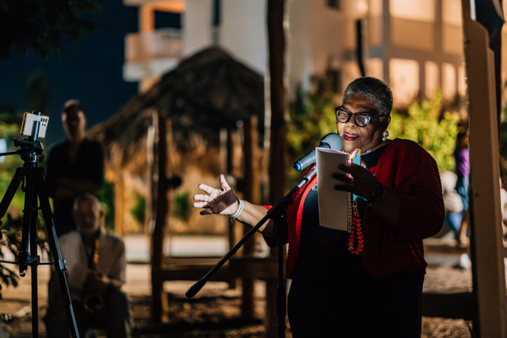 The evening was accompanied by music from saxophonist Alan Bowen and poetry written by Wilco Harbers. Lieutenant Governor John Soliano, Adely Jansen from Parke Isidel, Henna Winklaar, and Wilco Harbers each took turns reading poems.