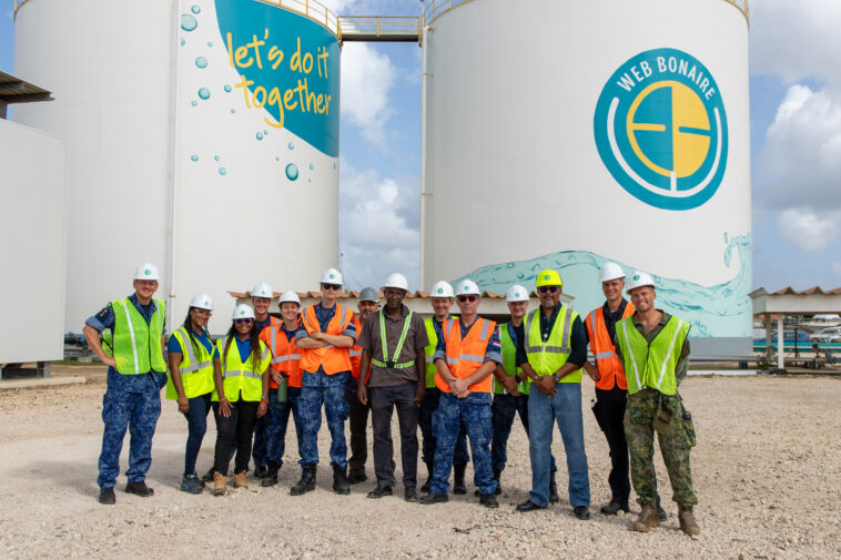Kralendijk, 23 di ougùstùs 2024 – Resientemente un delegashon di Defensa Hulandes a hasi un bishita di trabou na Water – en Energiebedrijf Bonaire (WEB). E bishita aki tabata den kuadro di fortalesé koperashon i mehorá e akshonnan konhunto durante posibel kalamidat i situashonnan di krísis. Durante un rekorido na e instalashon di produkshon di awa di WEB Boneiru, representantenan di Defensa Hulandes a kombersá ku e profeshonalnan di awa di e isla.