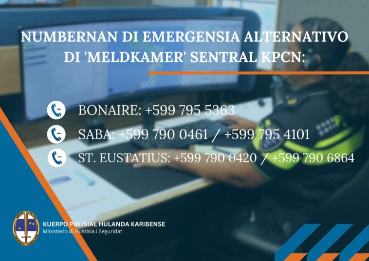Kralendijk, – KPCN ta informá ku djaweps 29 di ougùstùs entre 12 or di mardugá i 6or di mainta, e numbernan di emergensia 911 i 112 ta for di servisio.