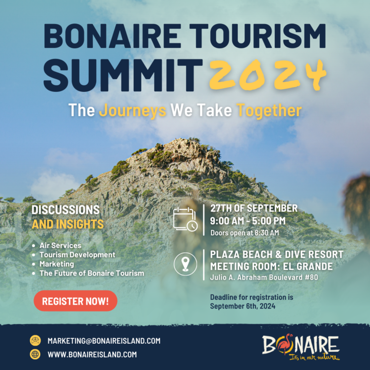 Op 27 september organiseert TCB haar vierde jaarlijkse Bonaire Tourism Summit, met als thema ‘The Journeys We Take Together – De reizen die wij samen maken’. Deelnemers krijgen een update over de laatste ontwikkelingen in de toeristische sector, waaronder airlift, marketing inspanningen, public relations strategieën en meer. Partners en stakeholders kunnen zich nu inschrijven om deel te nemen.