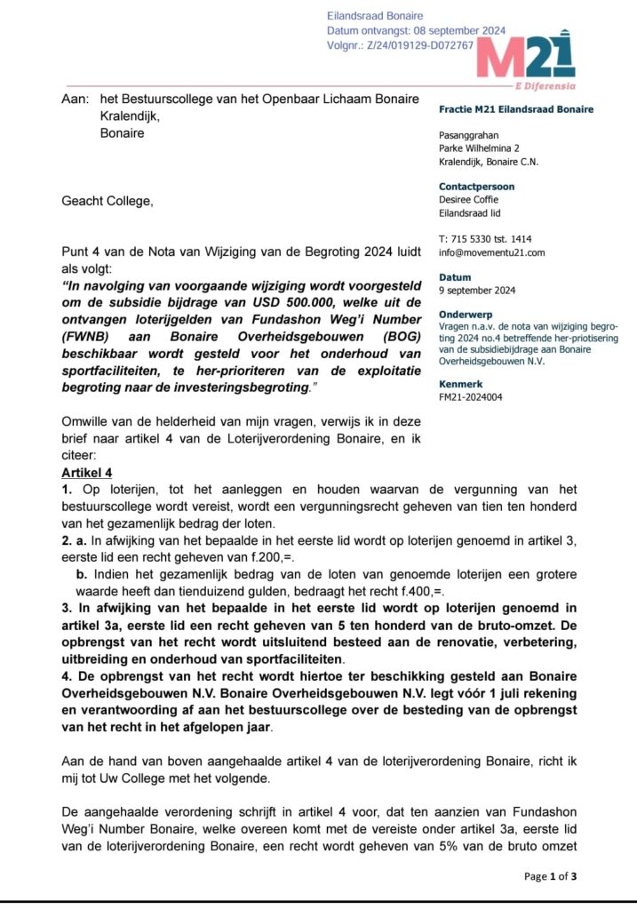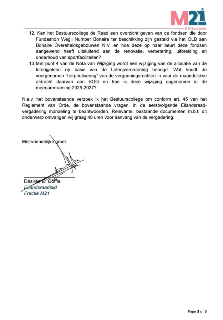 KONSEHAL DAISY COFFIE A MANDA KARTA KU 14 PREGUNTA SKÈRPI PA GOBIERNU