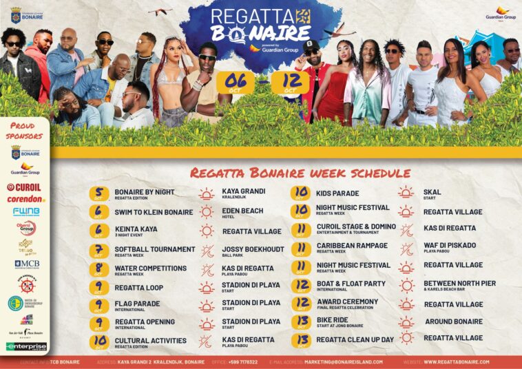 Kralendijk,- Tourism Corporation Bonaire (TCB) is excited to announce the full Regatta 2024 schedule and some additional entertainment highlights. Joining the already stellar lineup are Aruba’s legend Jeon, Bonaire’s own international star Ir-Sais as our Guest star, and the newest addition, Buddy Love, as part of Icons.