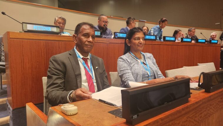 Kralendijk,- Organisashon di Derecho Humano di Boneiru, James Finies i Davika Bissessar, orguyosamente a asistí na e seshon di 4to Komité di Nashonnan Uni riba Teritorionan-Sin-Propio-Gobernashon, uniendo den diskushonnan riba futuro di teritorionan manera Islanan Virgines Britániko I Merikano, Polinesia Fransés, Nueva-Caledonia, i Guam, entre otro.