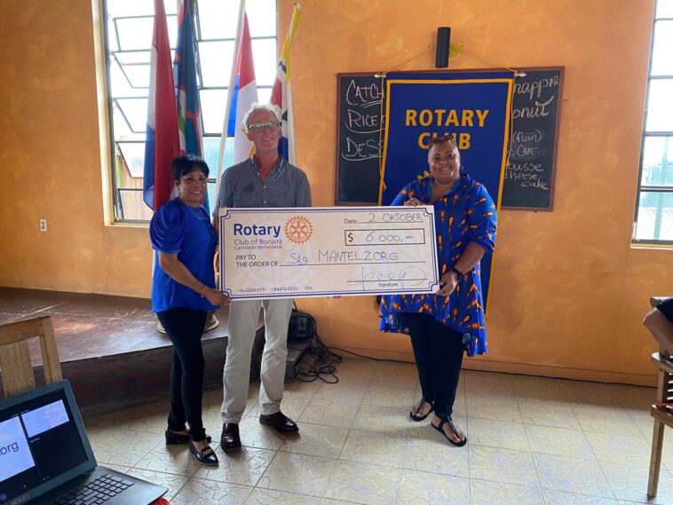 Kralendijk,- Rotary Club Bonaire (RCB), e aña aki atrobe, a kontribuí ku un donashon finansiero na Fundashon Mantelzorg.