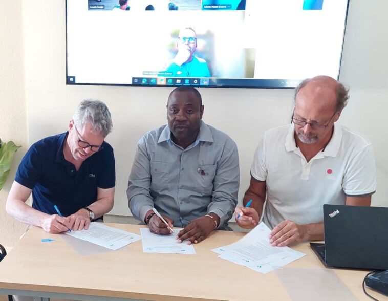 Kralendijk,- Djabièrnè último miembronan di direktiva di PCC, sr. Van der Linde i sr. Sietsma huntu ku presidente di AFBW, sr. Cherel Kwidama den un sala yen di trahadónan di PCC a firma un akuerdo pa un CAO 2025 – 2026.