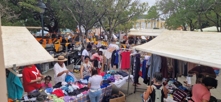 On King’s Day, the Rotary Club Bonaire organized its annual Feria. The Feria, which once again took place on Wilhelminaplein this year, was an unprecedented success. Again, many residents and businesses brought in used items over the past few months, but this year there were also an unprecedented number of new items made available by local businesses. New furniture, lamps, as well as brand new refrigerators and washing machines were for sale at very friendly prices on the square. The many bargain hunters were therefore eagerly waiting behind the ribbon to stream onto Wilhelminaplein after the starting signal by RCB chairman Jan Okhuijsen.