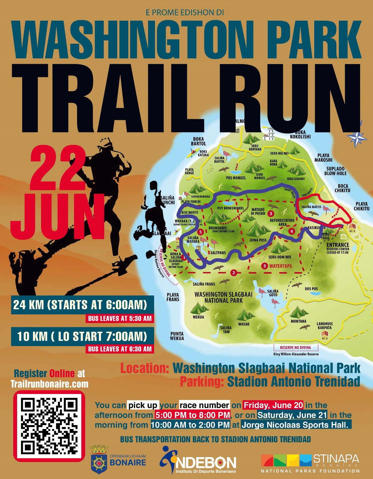 Kralendijk,-We would like to inform you that the short route in the Washington Slagbaai National Park is closed for visitors on Sunday, June 22nd 2025, from 8AM till 12PM due to the first edition of the Washington Slagbaai Trail Run.