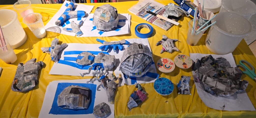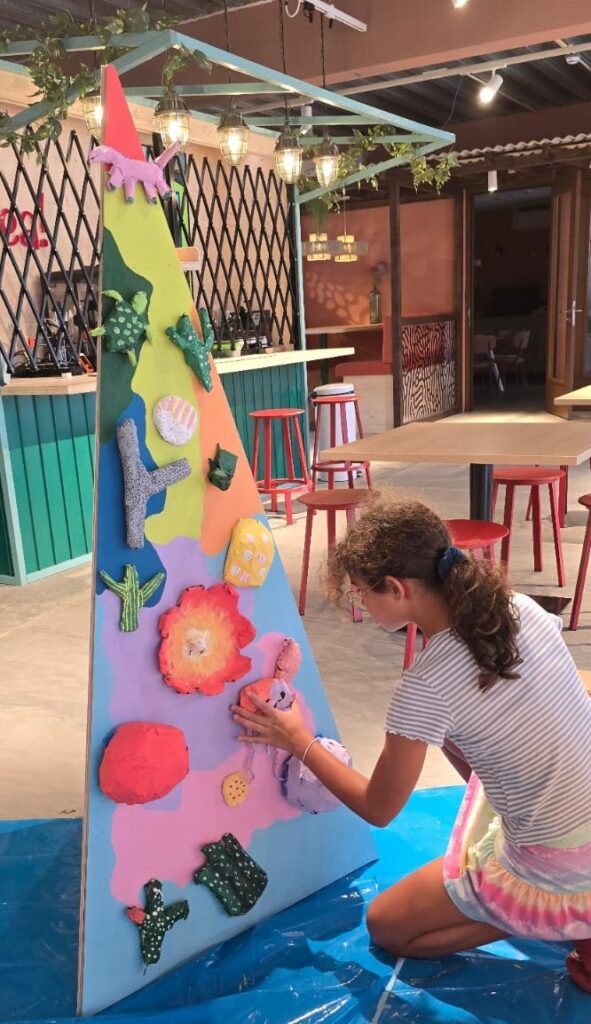Durante e tayer, muchanan a traha huntu na kreashon di un tipi kolorido, un instalashon di arte ku ta símbolo pa konekshon, kreatividat i kolaborashon. E partisipante di mas yòn a pinta tela ku despues a konvertí den un klechi di lapi grandi. E muchanan mas grandi a diseñá i pinta e pènelnan di tipi, traha pènchi di 3D pa e partinan habrí ku a traha spesialmente den e tipi, i forma figuranan imaginativo di papel duru ku a haña un lugá riba e obra di arte.