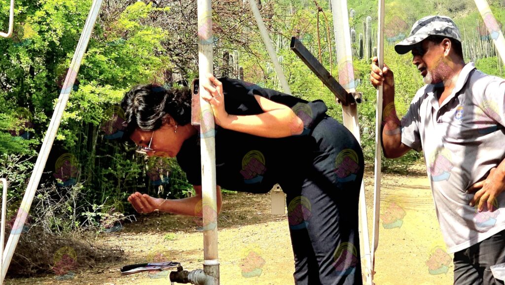‘Sektor di agrikultura ta importante pa futuro di nos isla,’ segun diputado Anjelica Cicilia. ‘Si nos sòru pa bon akseso na awa, nos kunukeronan por hasi nan trabou mihó. Esaki no ta yuda solamente nan mes, pero henter Boneiru tambe.’