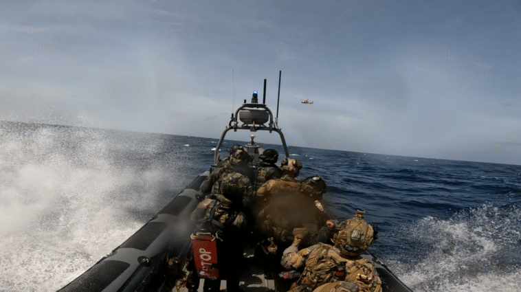 Onboard the Friscs were combined teams consisting of Royal Netherlands Navy crew members and personnel from the U.S. Coast Guard. The so-called “go-fast” vessel ignored repeated calls to stop. During the dangerous chase, the smugglers performed evasive maneuvers and jettisoned packages overboard. Precision shots at the vessel from the helicopter ultimately brought the go-fast to a halt.