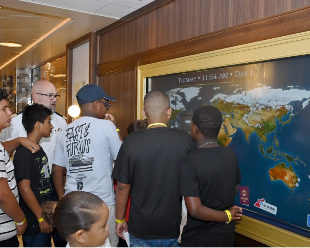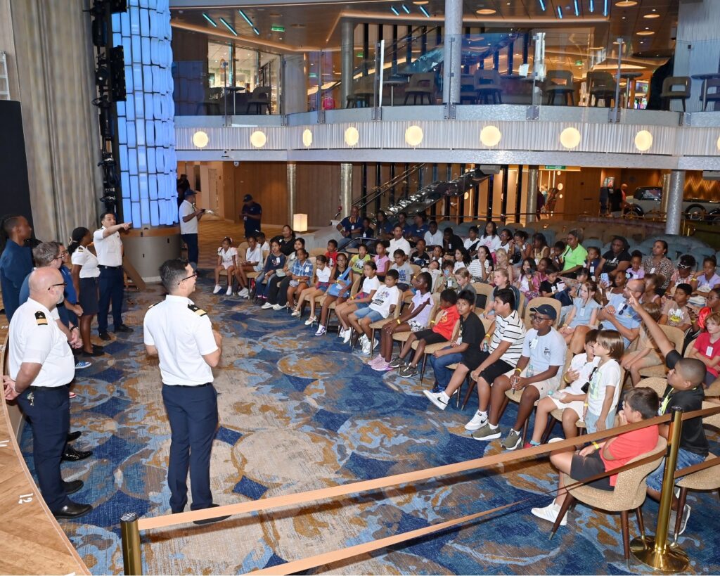 Tijdens de rondleiding kregen de deelnemers een uniek kijkje achter de schermen van het schip. Ze leerden meer over het reilen en zeilen aan boord, de internationale bemanning en de verschillende faciliteiten die het cruisetoerisme naar Bonaire brengen.