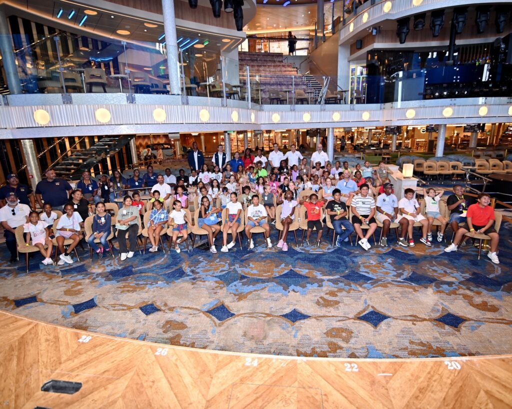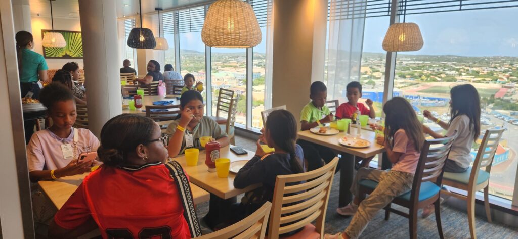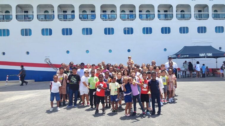 De kinderen van het project mochten een exclusief bezoek brengen aan het imposante cruiseship Carnival Celebration, dat aanmeerde in de haven van Kralendijk.