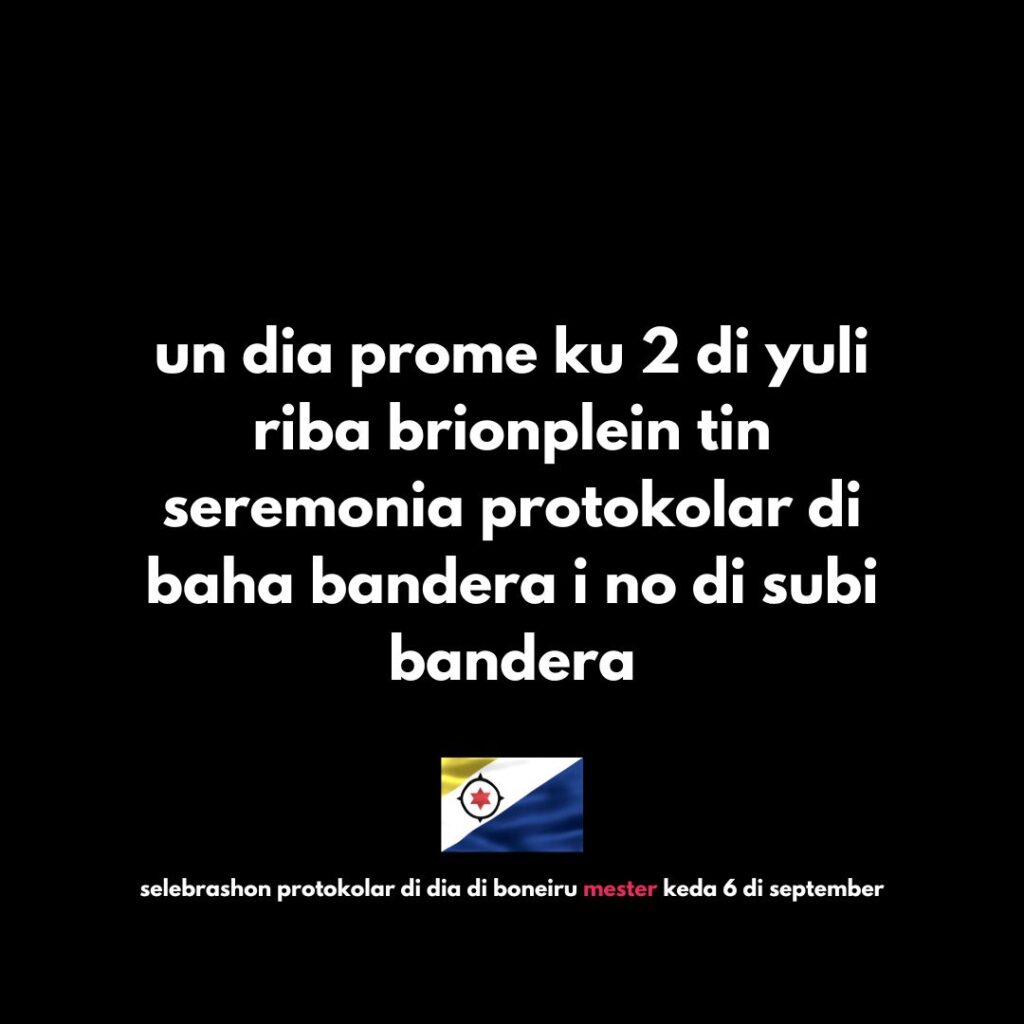 Laga nos spera ku nos gobernante ta reflehá riba e desishon aki i ta rekonosé ku patriotismo no por wordu impone den skuridat di madruga, sino ku e mester bria den lus di dia, huntu ku pueblo ku ta sinti orguyo di ta Boneriano.