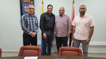 De delegatie bestaat uit de raadsleden: B. Dirksz, C. Vrolijk, D. Coffie, R. Hellburg-Makaai, D. Crestian en griffier.