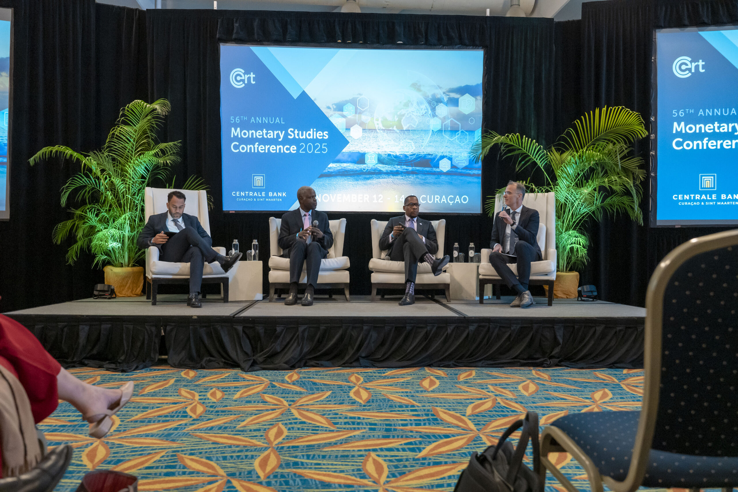 Riba e último dia di e konferensia, un Governors’ Panel formá pa kuater presidente di banko sentral di CARICOM a analisá e tema: ‘Kon Stablecoins ta afektá ròl di dòler estadounidense i kiko esaki ta nifiká pa resiliensia den Karibe.’