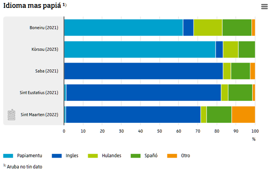 Na Kòrsou, kasi 80 porshento di e poblashon ta papia Papiamentu. Na Boneiru, esaki ta 62 porshento. Na Boneiru tambe ta papia spañó i ingles (tur dos 15 porshento). Na Aruba, Papiamento ta e idioma mas papiá. Papiamento i Papiamentu ta dos variante ofisial di e mesun idioma. Aruba ta usa Papiamento, Boneiru i Kòrsou ta usa Papiamentu. E diferensianan prinsipal ta den ortografia i tin biaha den pronunsiashon.
