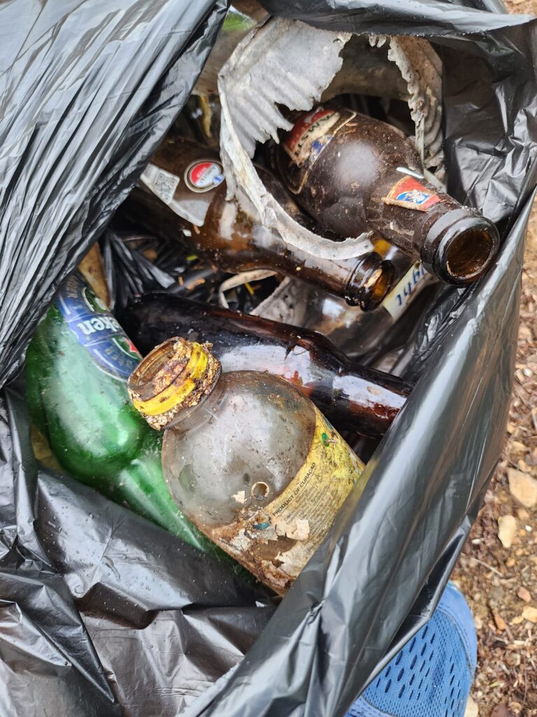 Over the course of two hours, staff removed plastic and glass bottles, as well as a television along the three-kilometer road leading to the park.