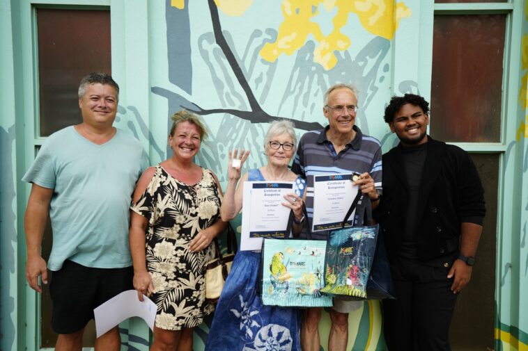 Jane Oakhill en Carsten Elbro, afkomstig uit Duitsland, hebben erkenning gekregen voor de 20 jaar die zij Bonaire bezoeken, en hiervoor kregen ze allebei een gouden speld.